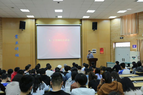 院长王绍强讲话。他表示,新学院的成立代表了我们中国地质大学对于地理学科、测绘学科、软件工程学科高度的关注。希望各位同学来到新的学院能够发奋图强,抓住当前的大好机遇。