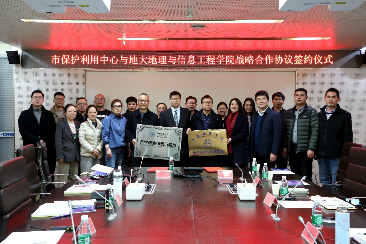 王绍强院长、郑振华主任代表双方签署战略合作协议,与会人员共同见证产学研合作示范基地和大学生实习实践基地的授牌仪式。