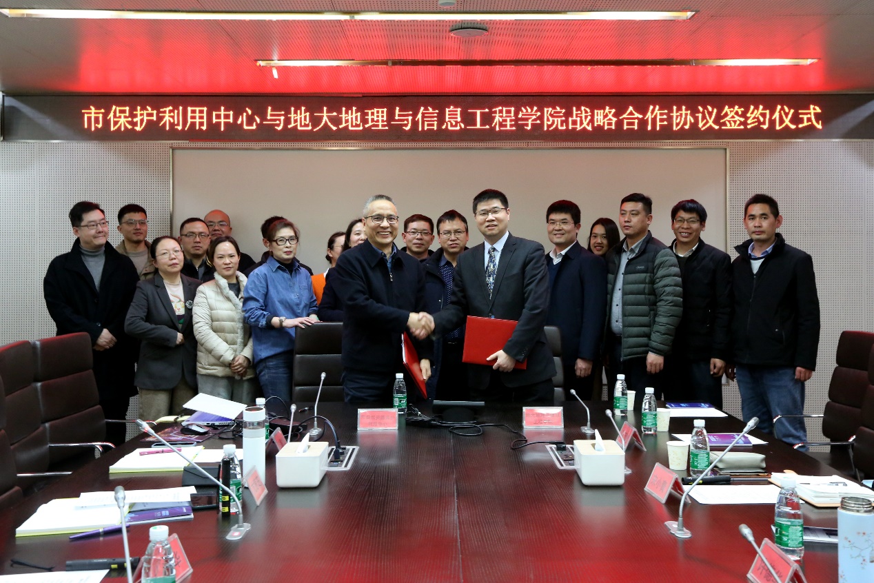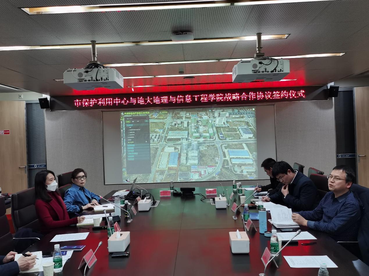 党委书记许德华、院长王绍强、副院长宋小青、学科与社会合作办公室主任曾杰、地理科学系副主任陈万旭以及教师代表赵国松一行,赴武汉市自然资源保护利用中心(简称“市保护利用中心”)开展访企拓岗促进协同育人战略合作交流。会议由“市保护利用中心”副主任亢德芝主持,“市保护利用中心”主任郑振华、技术管理部部长张翼峰、信息部部长付雄武、政策法规研究部部长王文静、土地利用研究部部长熊威、土地利用规划部部长徐桢敏、空间规划研究部部长彭阳、空间规划设计部部长何浩、江南分中心部长柳应飞等参加调研交流。