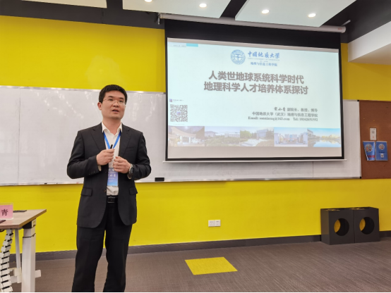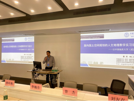 在地理学教材与课程建设分论坛上,青年教师曾杰以“面向国土空间规划的人文地理教学实习设计——以中国地质大学(武汉)为例”为题,介绍了我校地理科学专业实习实践课程体系建设的现状和成效,分享了地理科学专业在地理学本科大类培养背景下,聚焦学生知识、能力和意识培养,以国土空间规划为载体,开展人文地理实习课程“认知-调查-分析-治理”四段式内容设计和“政-产-学-研”多主体教学模式构建的经验与思考。