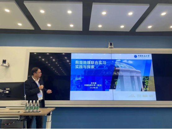 在野外实习分论坛上,副院长王伦澈以“荆楚地理联合实习实践与探索”为题,介绍了湖北省地理联合实习发启的教学初衷、实习的内容和主题、实习路线安排、实习教学组织方式和教学方法、解决的教学问题、主要成效和推广情况。