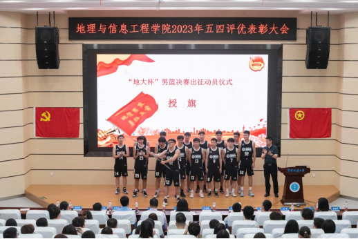 男子篮球队在今年的“地大杯”篮球赛中突破重围进入决赛,表彰仪式设置特别环节为球队加油鼓劲。院长王绍强为学院男子篮球队出征“地大杯”决赛授旗,队长曹斌代表男子篮球队发言并表示将不负学院期望,在决赛中赛出伟德Betvictor中文
