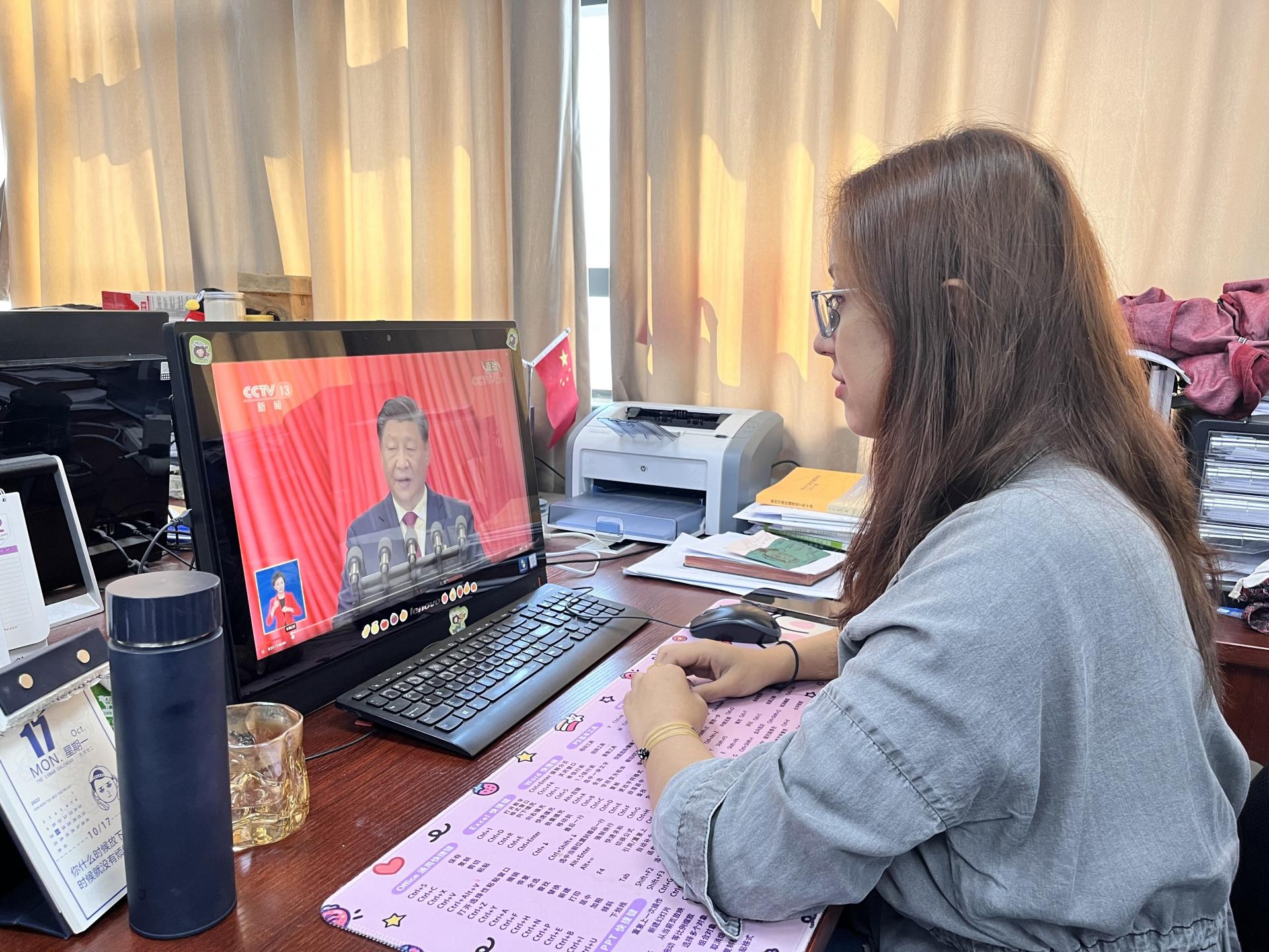 党委积极组织学院师生通过线上线下相结合、集中组织和自行观看相结合等方式,收看中国共产党第二十次全国代表大会开幕会盛况直播。