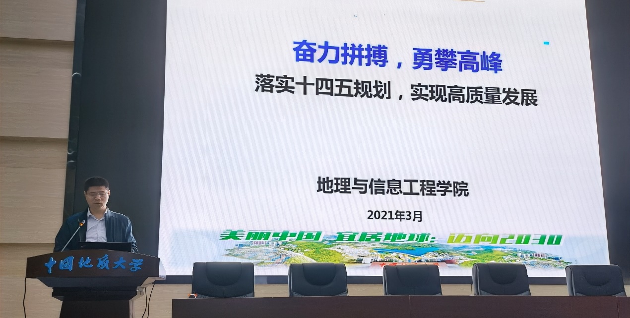 和国家地理信息系统工程技术研究中心教职工大会,领导班子成员、学院和中心全体教职工参加会议,会议由副院长王伦澈主持。