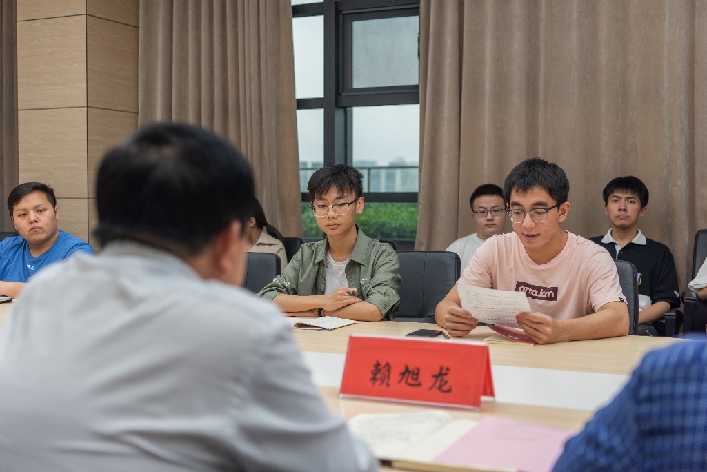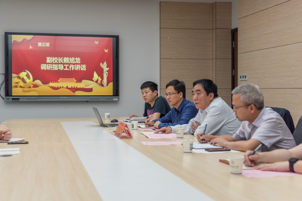 赖旭龙同师生交流并作大学生思想政治教育工作指导讲话。他同学生代表亲切交谈,询问学生日常学习生活当中所遇到的困难和问题,并认真聆听并一一做记录。他特别询问了学生党员发展工作情况。武彦斌作了简要汇报,并表示上级党组织部署的工作任务正在顺利推进。