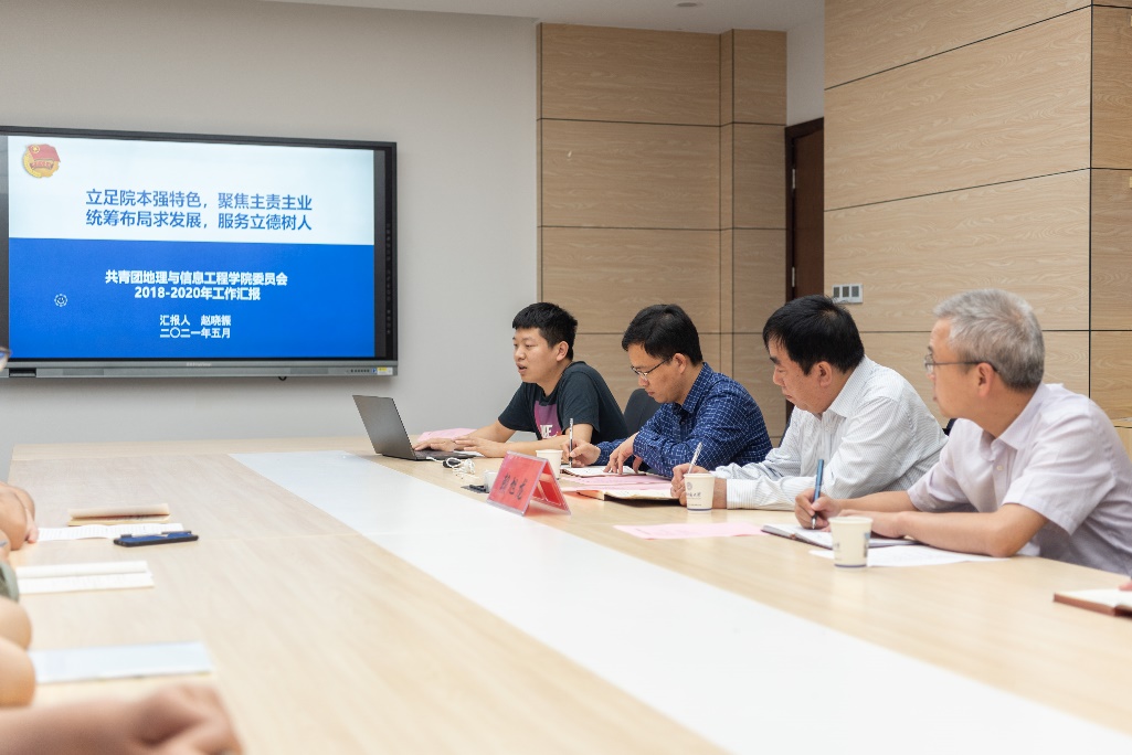 团学工作的基本思路,从“强化思想政治引领,引领青年爱国奉献”、“深化团学组织改革,凝聚青年矢志力行”、“深化团学组织改革,凝聚青年矢志力行”、“坚持科学实践指导,服务青年茁壮成长”等四个方面汇报了学院共青团工作的主要成效,并对未来工作思考做了汇报。