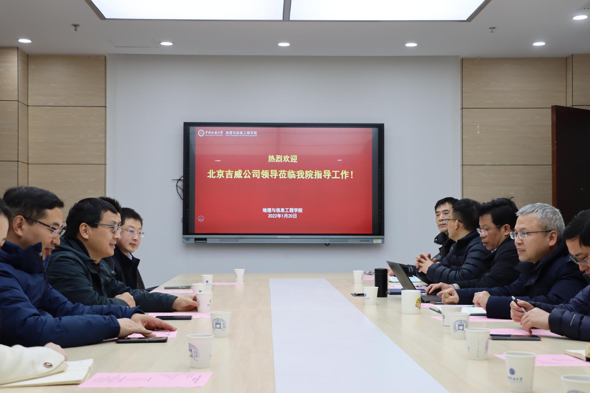 党委书记许德华致欢迎词并介绍学院整体人才培养、科学研究和社会合作等基本情况,学院副院长、国家GIS工程技术研究中心主任陈能成介绍中心基本情况,北京吉威数源公司董事长张扬介绍公司基本情况。双方围绕新时代测绘地理信息新发展和测绘地理信息服务自然资源展开了交流,张扬详细介绍了3S与ABC的技术融合,空间大数据、遥感智能化等新技术,分享了测绘地理信息在自然资源调查监测、自然资源确权登记等方面服务自然资源和数字中国的先进经验和实际案例。座谈交流气氛热烈,为后期校企合作奠定了良好的基础。