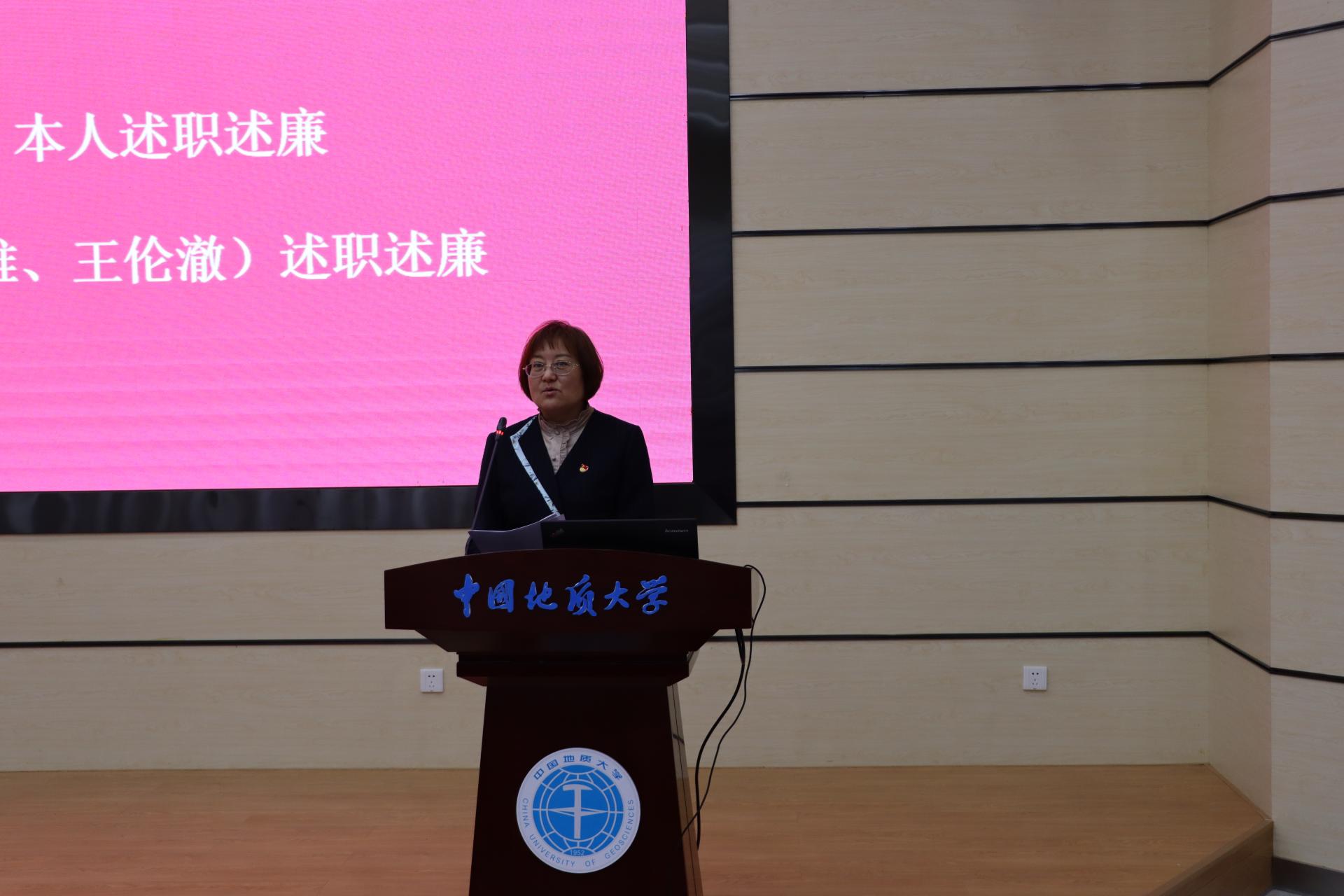 学院党委书记许德华主持行政班子及班子成员述职述廉环节。院长王绍强代表班子做述职报告,并做个人述职述廉;副院长关庆锋、潘雄、王伦澈依次分别做述职述廉。