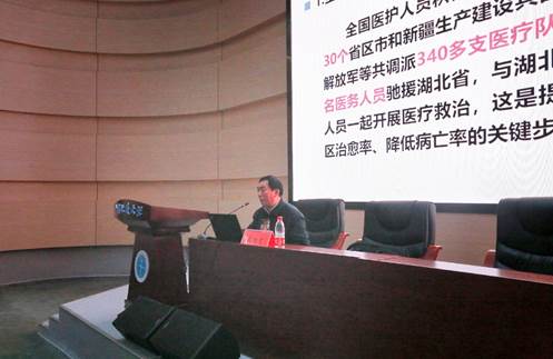 赖旭龙从始终坚持以人民为中心、总揽全局集中力量办大、聚天下英才而用之、人民军队是中国特色社会主义的坚强柱石等方面,用始终把人民安全放在首位,全力救治,在人民生命和经济利益之间果断选择生命至上、关心关爱海外中国公民、“以国之名,举国哀悼”、全国医疗资源驰援湖北省、保障“菜篮子”“米袋子”等多个方面的案例诠释中国特色社会主义制度的优越性,并结合我校的抗疫历程,号召广大青年师生坚定“四个自信”,争做担当民族大任的时代新人,用实际行动为实现中华民族的伟大复兴贡献力量。