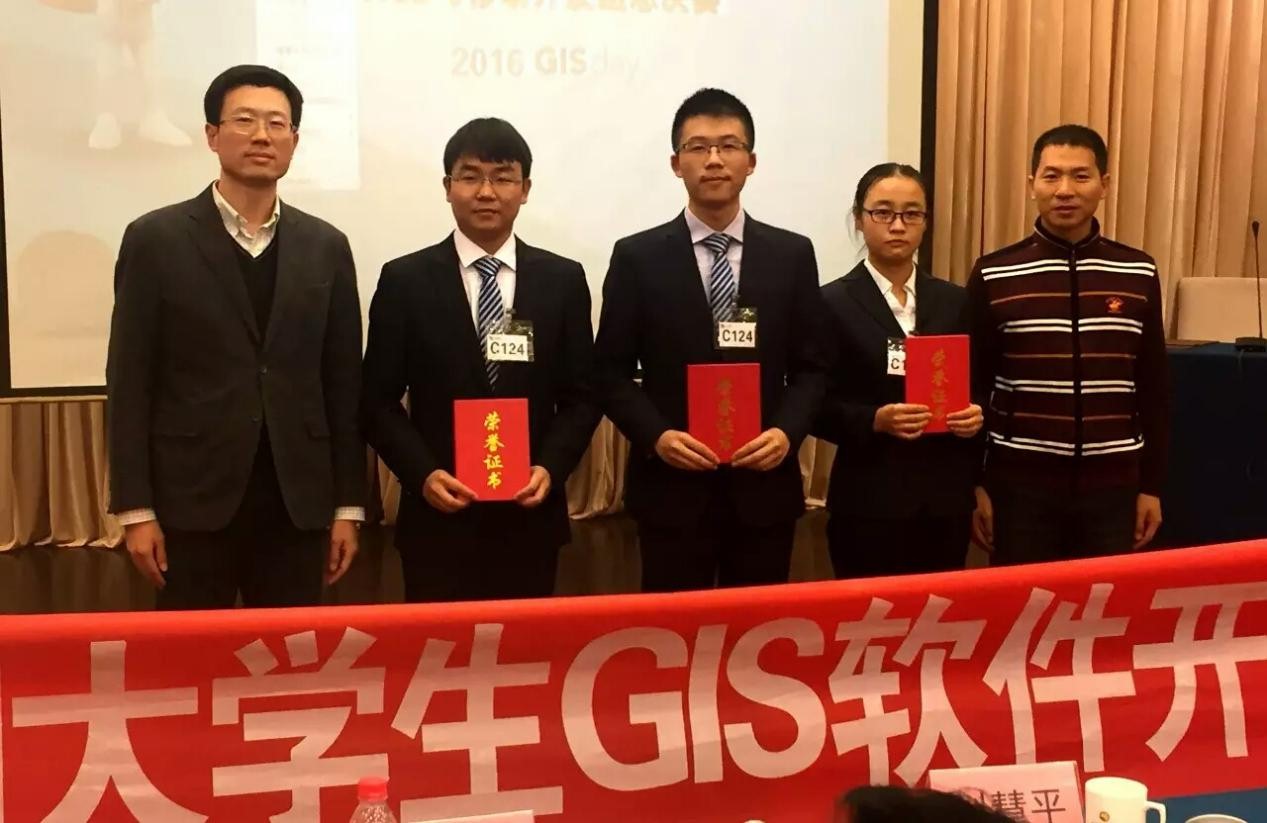 2016年11月16日,美国环境系统研究所公司(Esri)举办,中国测绘地理信息学会指导的2016Esri杯中国大学生GIS软件开发竞赛•Web与移动应用开发组总决赛暨颁奖典礼在北京落下帷幕。我校信息工程学院C124小组的参赛作品《OpenEnvironment》惊艳亮相。其思考缜密程度、系统实用价值及其良好的可拓展性得到评委的赞赏,以不凡的实力获得二等奖。该小组也是我校有史以来第一支杀进决赛的队伍。