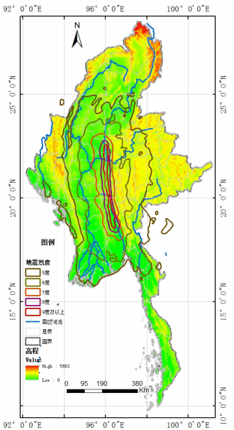 应急工作小组在“中国科学院—“一带一路”国际科学组织联盟(CAS-ANSO)可持续发展研究计划项目缅甸可持续发展问题综合研究”、“中国GEO全球灾害数据应急响应机制(CDDR)”、“国家青藏高原科学数据中心”等支持下,结合长江中游地学科学数据中心的数据资源,利用缅甸地质资料、水系数据、SRTM V3 DEM数据,以及吉林一号、北京三号、高分一号等多源国产高分辨率遥感影像,结合GIS空间分析技术,对缅甸地震引发的滑坡、崩塌、泥石流等次生地质灾害及堰塞湖隐患区域进行了精准识别与风险评估,精确划分了伊洛瓦底江中游高砷高盐地下水富集区的水资源高、中、低污染风险区,评估分析了实皆断裂带灾区地下水和土壤中部分重金属元素含量分布区域,完成了对震区建筑坍塌率的定量统计与空间分布制图,为我国政府援助缅甸抗震救灾、资源调配和灾后重建提供了重要科学参考。