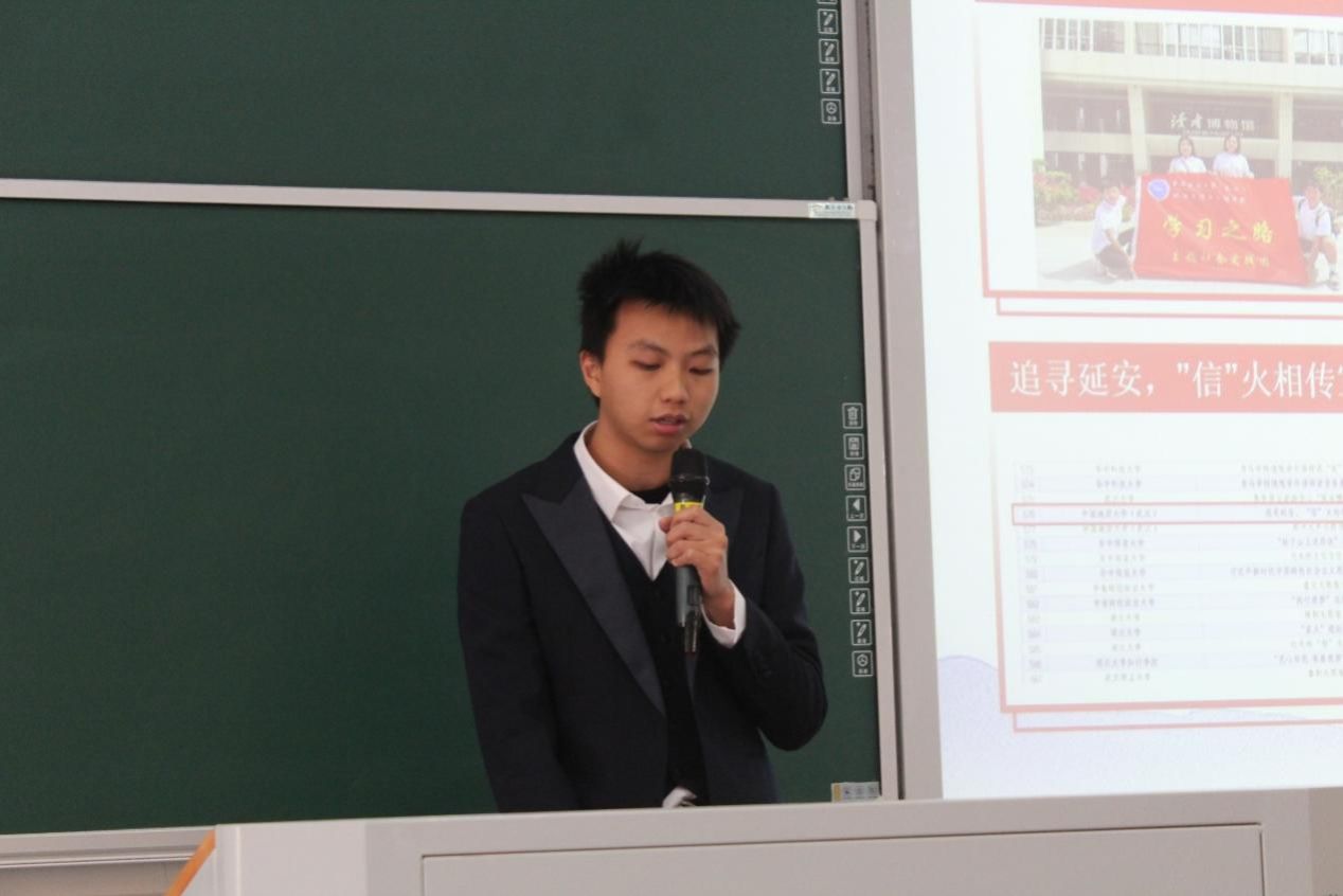 “测地明理”宣讲团代表骆阳介绍宣讲团发展概况。宣讲团自成立以来,积极贯彻党的二十大精神,通过集体备课、专题研讨、巡回宣讲等活动,形成了朋辈教育和浸润教育的思政教育模式,足迹遍布8省40余地,累计推出专题视频三十余部,开展红色理论宣讲百余场,覆盖听众3万余人次,被多家权威媒体报道,展现了青年力量在新时代征程中的积极作用,为学习贯彻宣传党的创新理论贡献了青年的力量。