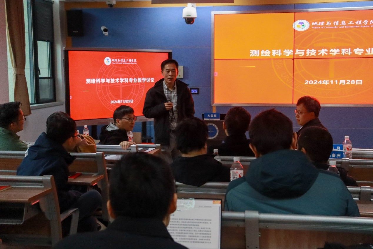 (通讯员 杨乃 岳林蔚)11月28日下午,测绘遥感系、空间信息系、院直党支部在未来城校区公教楼举办联合主题党日暨学科专业建设研讨会。学院党委书记孙莉、副院长关庆锋、副院长徐景田,测绘遥感系、空间信息系、院直党支部60余名党员、教学骨干参加活动。活动特别邀请武汉大学遥感信息工程学院秦昆教授、测绘学院黄海兰教授、资源与环境科学学院亢孟军副教授参加。