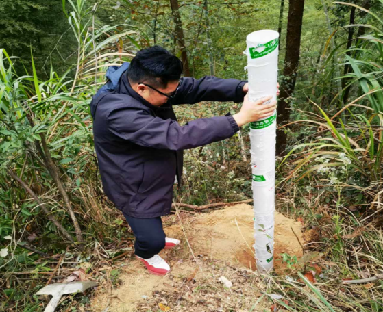黄春波、林伟华老师和秦见、丁明杨、吴天琪、范孟辉等研究生两次赴咸宁市崇阳县桂花林场开展森林大样地勘察选址、边界桩点埋设、网格桩点布设等工作。