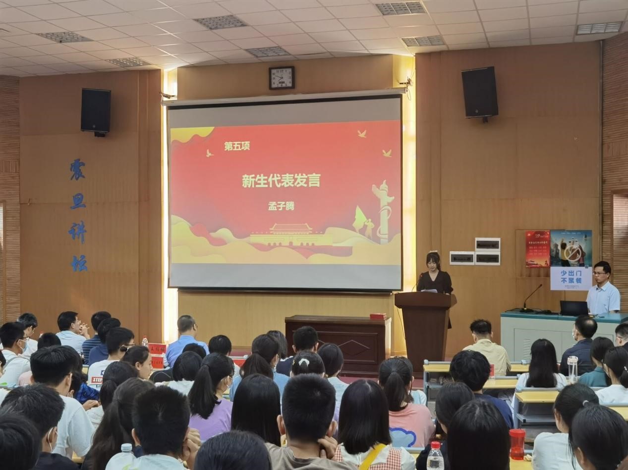 2021级本科新生入学典礼在南望山校区教三109举行。会议由学院党委副书记武彦斌主持,院党政领导班子成员、各系主任、各班班主任、教师代表、老生代表及全体 2021 级本科新生参会。