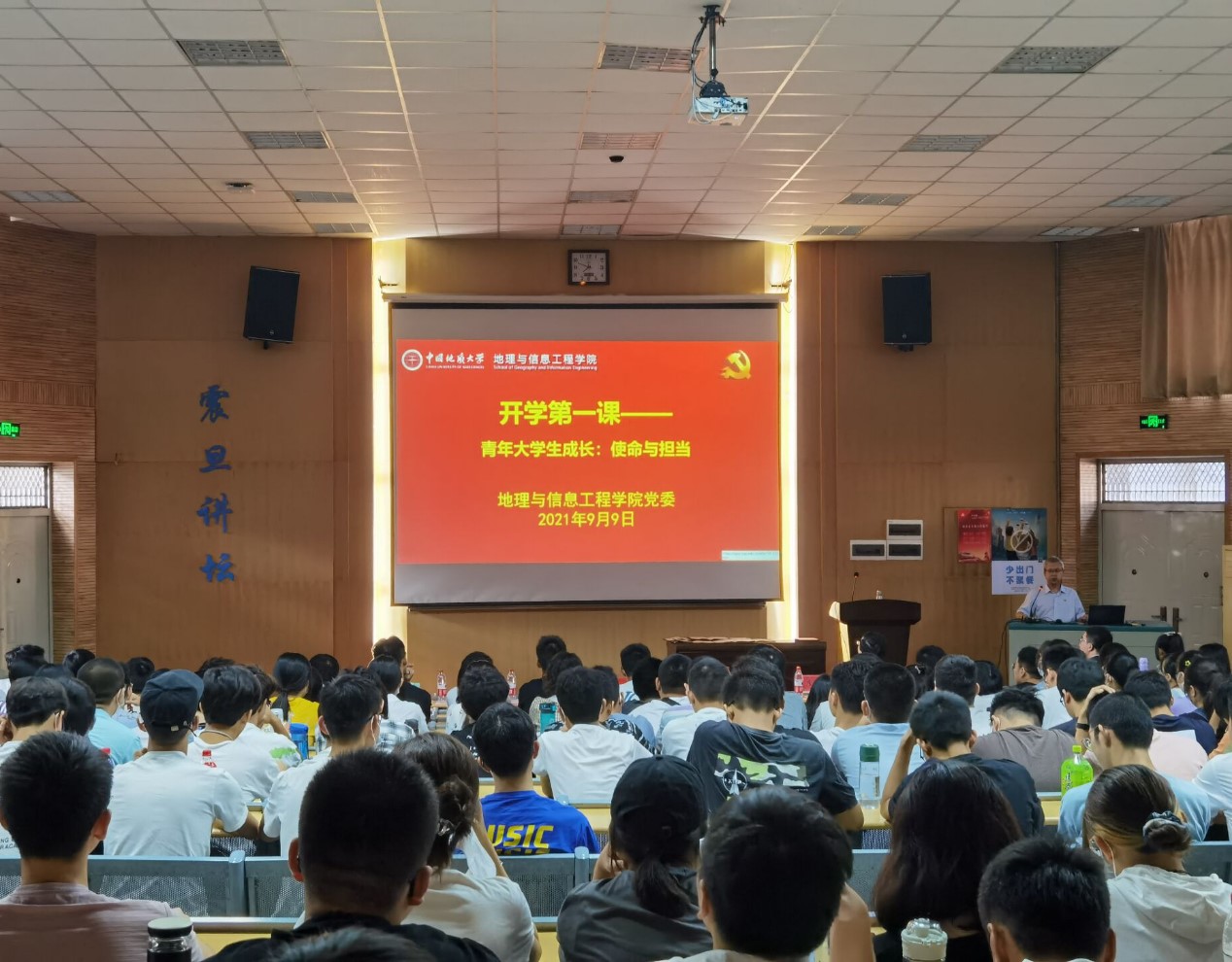 会议第二项,院长王绍强为新生致辞。王院长首先对新生的到来表示热烈的欢迎,同时对新生提出“践行校训,砥砺前行”、“勇于变革,勇于创新”、“志存高远,勇担重任”三点要求并希望学生在内外兼修的新方式中培育健全人格,希望同学牢记嘱托、不负韶华,焕发青年人的蓬勃朝气,铭记地大优良传统,勇担接班人的光荣使命。