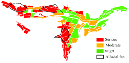本文提出的建筑物损毁评估方法主要包含三个步骤:首先,将基于极化SAR数据估算的统计模型的纹理参数取对数作为新的纹理特征来描述建筑物区的均匀程度。其次,基于提取的纹理特征选取阈值区分倒塌建筑物和完好建筑物。最后,计算建筑物区块内倒塌建筑物所占的比例,将建筑区的划分为轻度损毁、中度损毁和重度损毁三个等级,完成建筑物的损毁评估。此外,本文还还分析了极化SAR数据不同统计模型和不同纹理参数估算方法对建筑物损毁评估的应用能力。