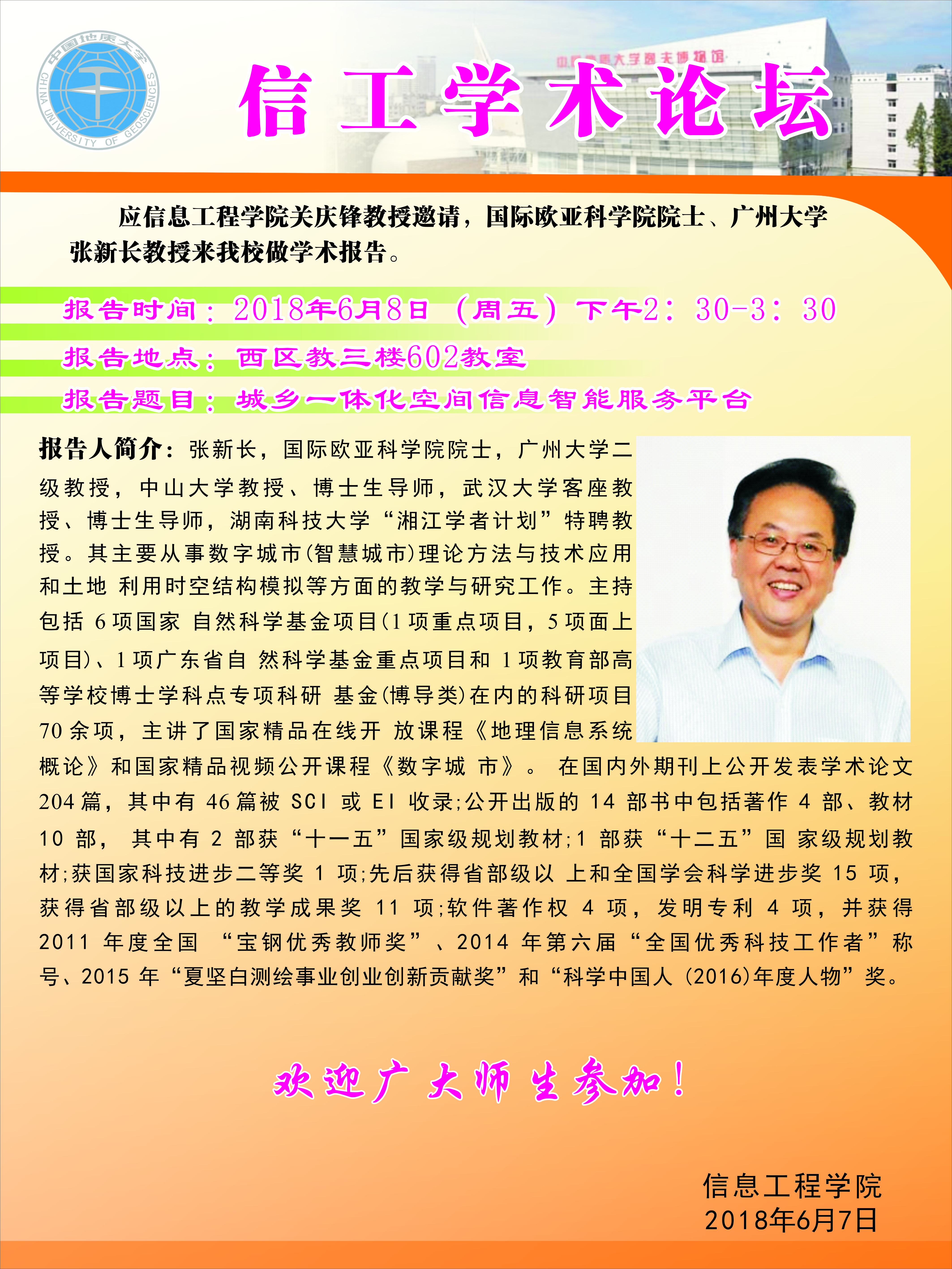信工学术论坛第116期:国际欧亚科学院院士张新长