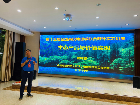 8月1日晚,中国地质大学(武汉)侯林春副教授应邀为“荆楚地理大讲堂”第二期做了题为“生态产品与价值实现”的报告。侯老师为实习师生详细介绍了生态产品的概念与特征、生态产品价值核算方式以及生态产品价值实现机制等内容。同学们围绕生态补偿标准合理性、生态补偿政策协调性、生态产品价值核算标准等问题与侯老师展开深入探讨。