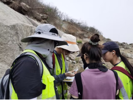 周口店实习队正式开始野外路线实习。实习队由季军良、温彦平、杨欢、赵国松等四位老师和地理科学专业的42名学生组成。根据安排,2-4日为路线实习,路线1是周口店遗址公园(包括猿人洞),主要内容为岩溶角砾堆积物(周口店组)、古人类和古生物化石遗存以及古人类演化与环境变化等;路线2是西风坡-官地,主要内容为房山复式岩体岩性、相带划分标志、花岗岩风化壳剖面及球形风化等;路线3是太平山南坡-煤炭沟,主要内容为164背斜和中奥陶统-中二叠统地层。在7月3日晚上进行了剖面实测和地层柱状图制作的讲座。