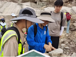 近期实习区天气异常炎热,为保证实习顺利开展,实习队通常早上6点钟出发,12点左右返回,同时每班配备防暑、防蚊虫叮咬等野外急救药品。尽管如此,仍出现个别同学轻微中暑迹象。但是同学们克服困难,不畏酷暑,挥洒汗水,以乐观态度践行我校“艰苦朴素、求真务实”的校训精神,野外紧跟老师步伐,认真听讲,细致观察野外现象,勤于思考,积极提问并与老师讨论相关地质现象成因等。与此同时,同学们在野外实习记录簿(简称野簿)上完成点号、点位、点义、露头和描述等重要知识点的速记。大家积极动手,学习和熟练掌握野外基本工作技能,包括产状测量、岩石标本采集、信手剖面图绘制及各种地质现象的素描图等工作。