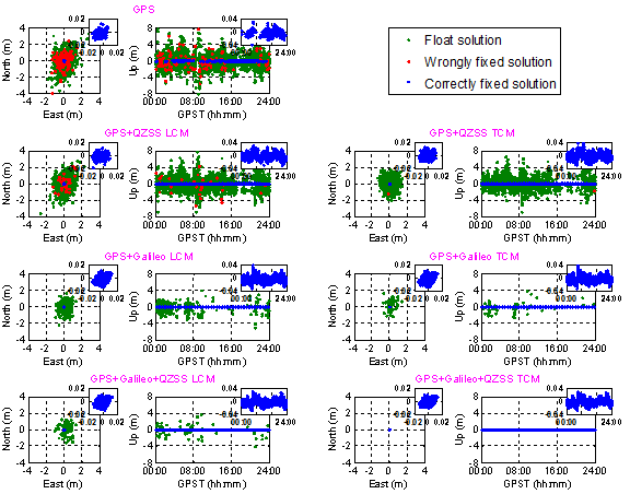 图1. 截止高度角为20o、GPS/Galileo/QZSS单频观测值(L1-E1-L1)的定位误差
