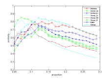 为了进一步验证CVS模型的有效性,本文以人工提取的实际显著的街道作为比较对象。如图2所示,通过对比实际显著的街道与三种模型在不同比例下的高等级街道,研究发现本文所提CVS模型能够较好地捕获格网状道路网的视觉显著特征,与人眼所感知到的显著道路更为一致。在CVS模型下,八个格网状道路网不同比例下的相似度呈现一种先快速升高、再缓慢降低的变化规律。同一城市不同尺度的道路网在实验中也展现出了尺度越大,比例越小的特征。