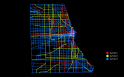 结果与讨论:在实验中,使用曼哈顿、盐湖城、旧金山、芝加哥、布法罗、圣地亚哥等八个格网状道路验证所提方法的可用性。使用两个传统模型CCVS模型、LVS模型与CVS模型进行对比。两种模型分别通过功能性指标(连通性)和常用的视觉指标(长度)来评价城市街道的视觉重要性。本文所提CVS模型与这两种传统模型的分层结果在街道的重要性程度上展现出了显著的差异。图1展示了CCVS(左)、LVS(中)与CVS(右)模型分层结果。