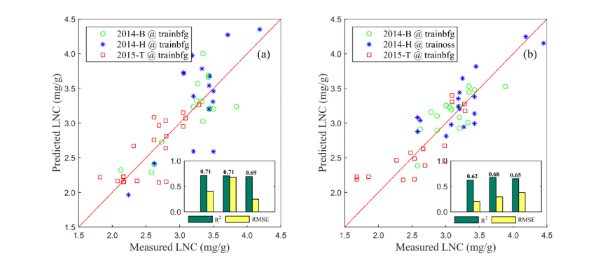 Lin, D., Jian, Y., Bowen, C. et al, Novel Combined Spectral Indices Derived from Hyperspectral and Laser-Induced Fluorescence LiDAR Spectra for Leaf Nitrogen Contents Estimation of Rice. Remote Sensing, 2020.
