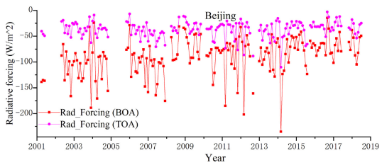 气溶胶特性的急剧变化极大地改变了中国东部的气溶胶辐射强迫(ARF)。 在2001–2012年期间,北京的大气最高(TOA)和最低(BOA)ARF分别降低了约30 W / m2和50 W / m2。 尽管2013年后气溶胶载量继续下降,但自2013年以来,TOA和BOA 气溶胶辐射强迫的量分别增加了约10 W / m2和30 W / m2,这种ARF趋势逆转主要是由于气溶胶吸收率提高。