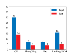 图2 不同方法在五个测试组的结果比较。每个测试组包含40个场景。图中条柱代表正确预测的场景数量。