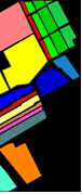 图 3. Salinas实验:(a) 假彩色图像,(b) ground truth, (c) 16类地物平均光谱。 |