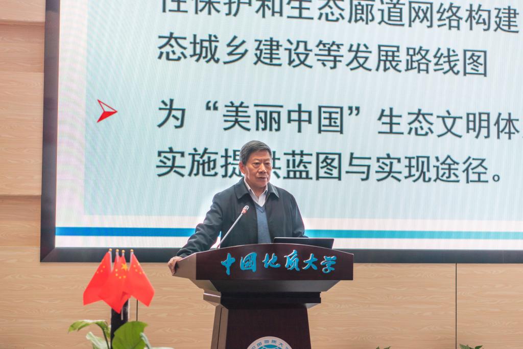 20191221日,“美丽湖北生态文明建设”高端论坛在我校未来城校区科教八楼学术报告厅成功举办。湖北省科技厅副厅长杜耘、湖北省自然资源厅信息化处处长郭贵洲、湖北省发展和改革委员会环资处副处长王晓峻、湖北省自然资源厅信息中心副主任李江、湖北省生态环境厅环境科学研究院副院长刘哲、中科院精密测量科学与技术创新研究院院长罗志强、中国科学院地理科学与资源研究所原所长刘纪远等省直机关及科研院所领导以及来自北京理工大学、湖北大学、华中科技大学、华中农业大学、华中师范大学、江西师范大学、同济大学、武汉大学、武汉理工大学、长安大学、中南大学、中南民族大学等兄弟院校嘉宾参会,我校党委书记黄晓枚、中国科学院院士金振民、副校长赖旭龙以及各职能部门负责人出席论坛,论坛开幕式由副校长赖旭龙主持。