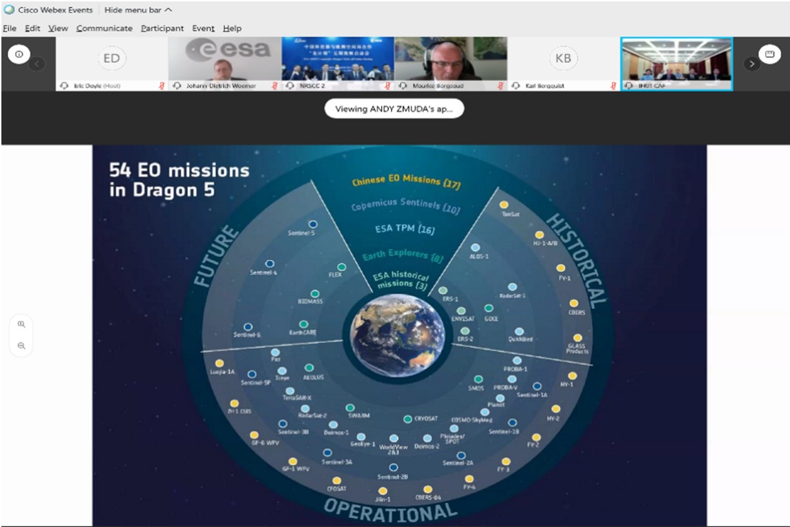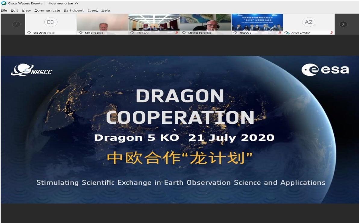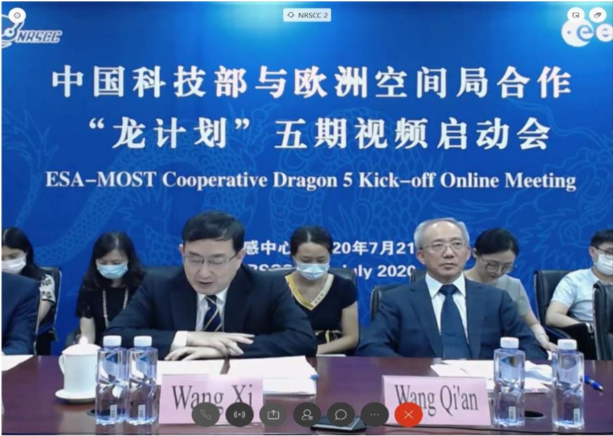 北京时间7月21日下午四点,中国科技部和欧洲空间局(以下简称欧空局)合作的“龙计划”第五期视频启动会正式开幕。中国科技部副部长王曦、科技部国家遥感中心主任王琦安、李德仁院士、 “龙计划”项目中方首席科学家中国林科院资源与信息研究所所李增元副所长、欧洲空间局对地观测科学应用与新技术部主任Maurice Borgeaud博士、欧洲空间局“龙计划”项目欧方首席科学家Yves-Louis Desnos博士以及参与“龙计划”合作的中欧双方学者参加了本次启动会。