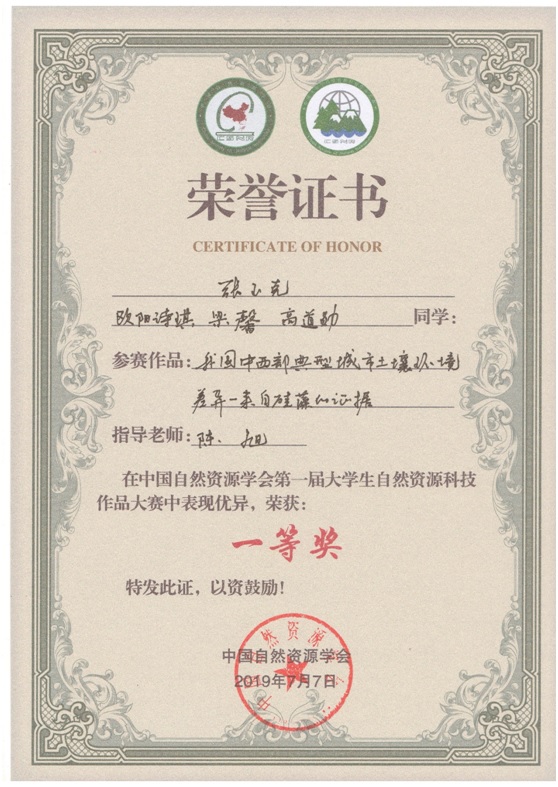 本届大学生自然资源科技作品大赛为各大高校地理相关专业的学生提供了一个良好的交流学习平台,培养提高了队伍成员的团结协作、语言表达、知识技术运用等方面的能力,同时加深了对自然资源相关问题的理解,与我校参赛代表同时获得本次大赛一等奖的还有山东科技大学、沈阳农业大学、南京师范大学三个高校的参赛队伍。