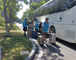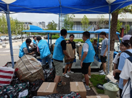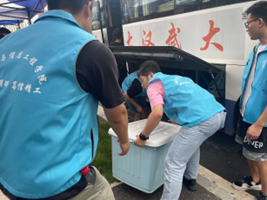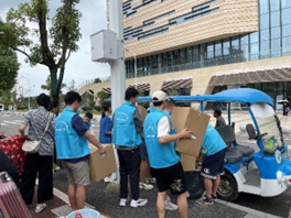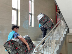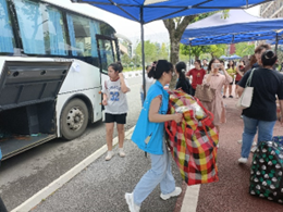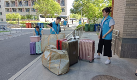 骄阳下,志愿者们身着蓝马甲,穿梭于校园之中。接驳组协助同学们在大巴和摆渡车之间装卸行李,并有序运送至寝室楼栋。楼栋组主动承担行李上楼工作,帮助同学们搬运较重的大件行李。从组团入口到寝室门口,大家形成了一条秩序井然的搬运“流水线”,极大提高了搬迁效率。志愿者们洒下的汗水闪烁着金色的光芒,忙碌的身影也成为了一道靓丽的风景线。