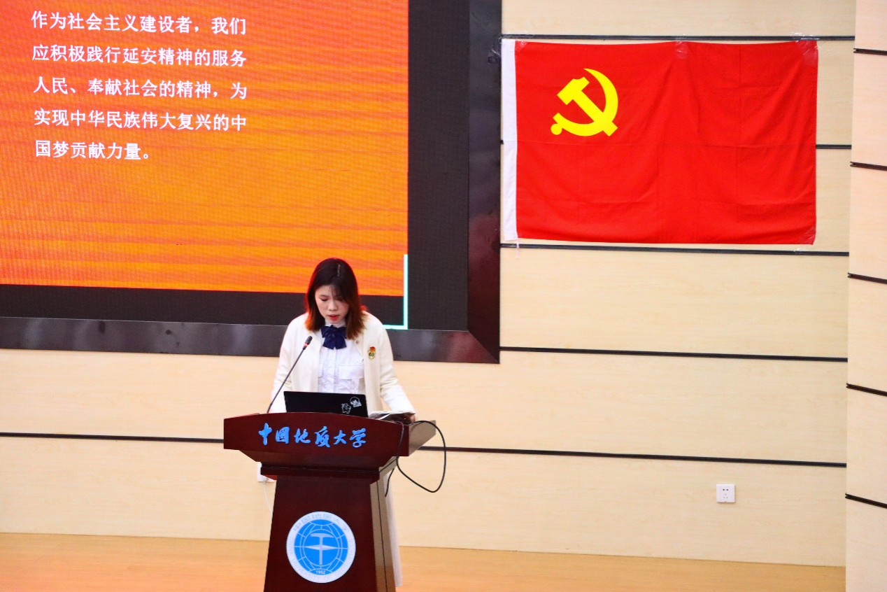 “追寻延安,‘信’火相传志愿宣讲团”宣讲人张思媛主讲《弘扬延安精神 奋进伟大时代》专题党课。从延安精神的历史背景到核心内容,张思媛带领全体学生党员回顾抗日战争时期中国共产党人在革命圣地延安自力更生艰苦奋斗的光辉岁月,并联系时代发展,深入探讨延安精神的指导意义。她说,延安精神诠释了全心全意为人民服务的根本宗旨,深入学习并弘扬艰苦奋斗的延安精神,坚定信念、实事求是,是每一位新时代共产党青年义不容辞的责任与担当。