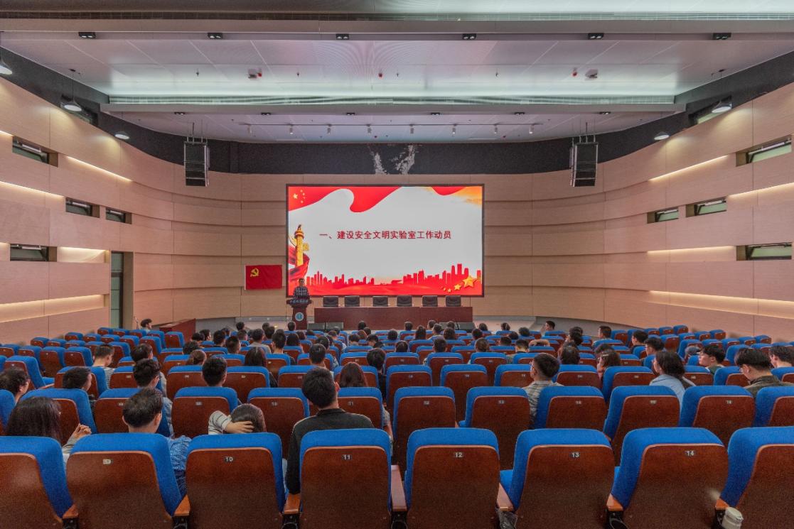一楼报告厅举行顺利启动。参加本次启动仪式的有副院长潘雄、党委副书记武彦斌、实验中心主任张剑波、教学办主任陈亮、实验中心张振、实验室临时党支部支委、实验室本周四周五值班同学共计100余人。启动仪式由院党委副书记武彦斌主持。
