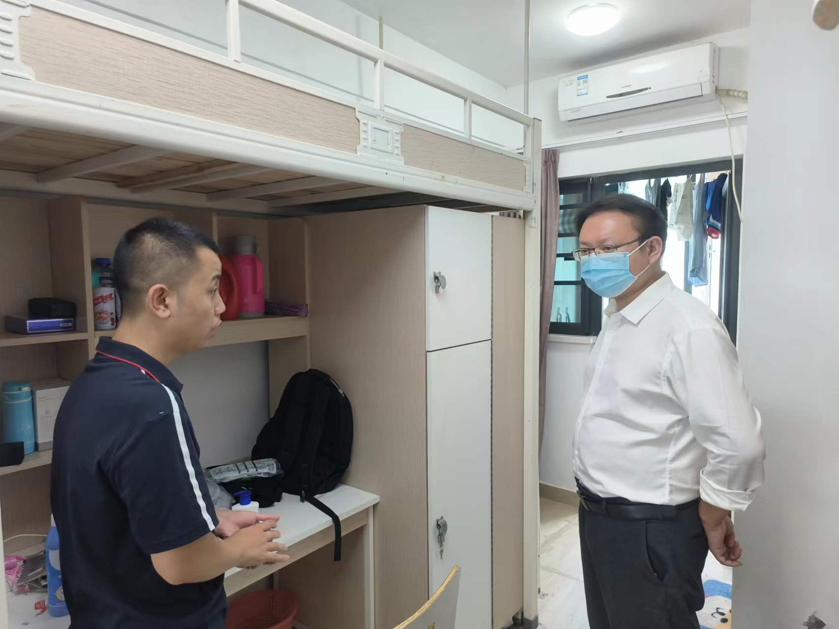 刚入学的2022级新生进行走访慰问。在走访过程中,老师们亲切地和新生们打招呼,仔细询问新生的生活习惯、在校饮食以及住宿事宜等情况。在与新生交谈中,院领导强调了宿舍卫生、用电安全等注意事项,同时,他希望新生们尽快适应新生活,保持良好的生活习惯,积极与导师沟通交流,根据职业发展规划提前制定学习计划,广读书、勤思考、多练笔,以昂扬向上的精神状态投入到新阶段的学习中去,用优良的成绩回报家长和社会。