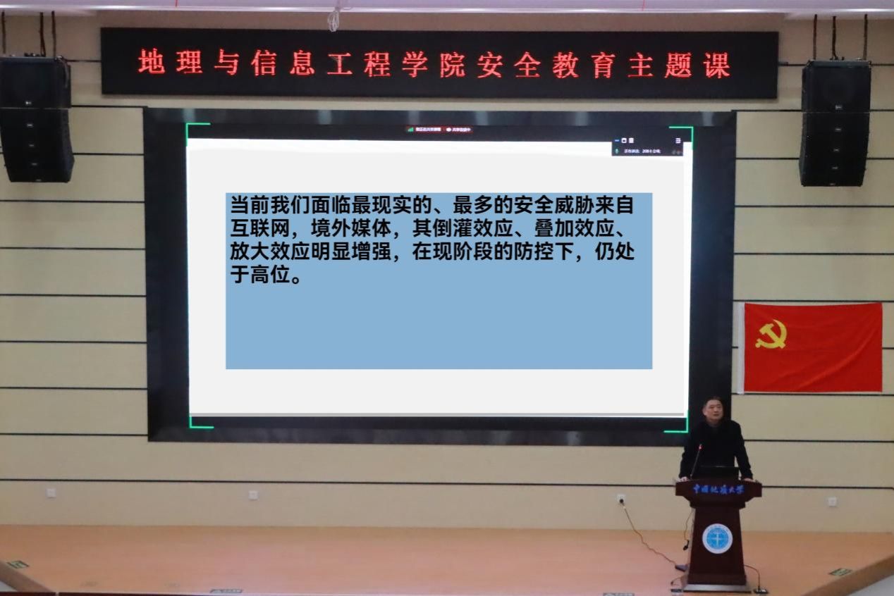 最后,关于“网络安全形势”专题,张献文主任提醒师生,互联网是我们面临的最直接且最复杂的安全威胁。所有同学都要规范自己的在线行为,倡导广大师生健康、理性、安全地使用互联网。他呼吁大家在享受网络带来便利的同时,也要充分认识到网络安全的重要性,切实提高网络自我防护意识。