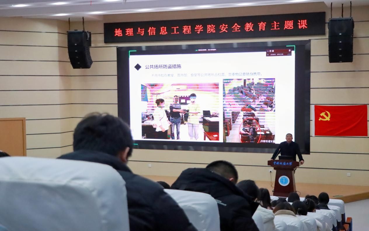 在展开“治安”话题时,张献文主任通过讲述本校的实际案例,揭示了校园中常见的盗窃方式,并详细讲解了如何提高防盗意识和采取有效的防盗措施。他特别指出,盗窃行为不仅侵犯了每一位同学的个人财产权益,更破坏了校园的公共安全环境。因此,他强烈建议师生们提高警惕,不要轻信陌生人,更要避免给盗窃分子可乘之机。他呼吁师生们积极向学校保卫部门报告任何可疑情况,以共同维护校园的安全。